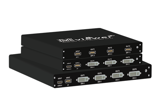 MV30X series can drive 3-4 displays from one signal of DP/HDMI in classic rectangular 1x3、1x4、2x2、3x1、4x1. And the single output can support up to 1920x1200@60Hz.